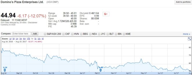The Domino's Pizza Enterprises Ltd. (ASX:DMP) share price fell 12% to $44.94 today – after briefly falling as low as $40 – after the company released its annual results.