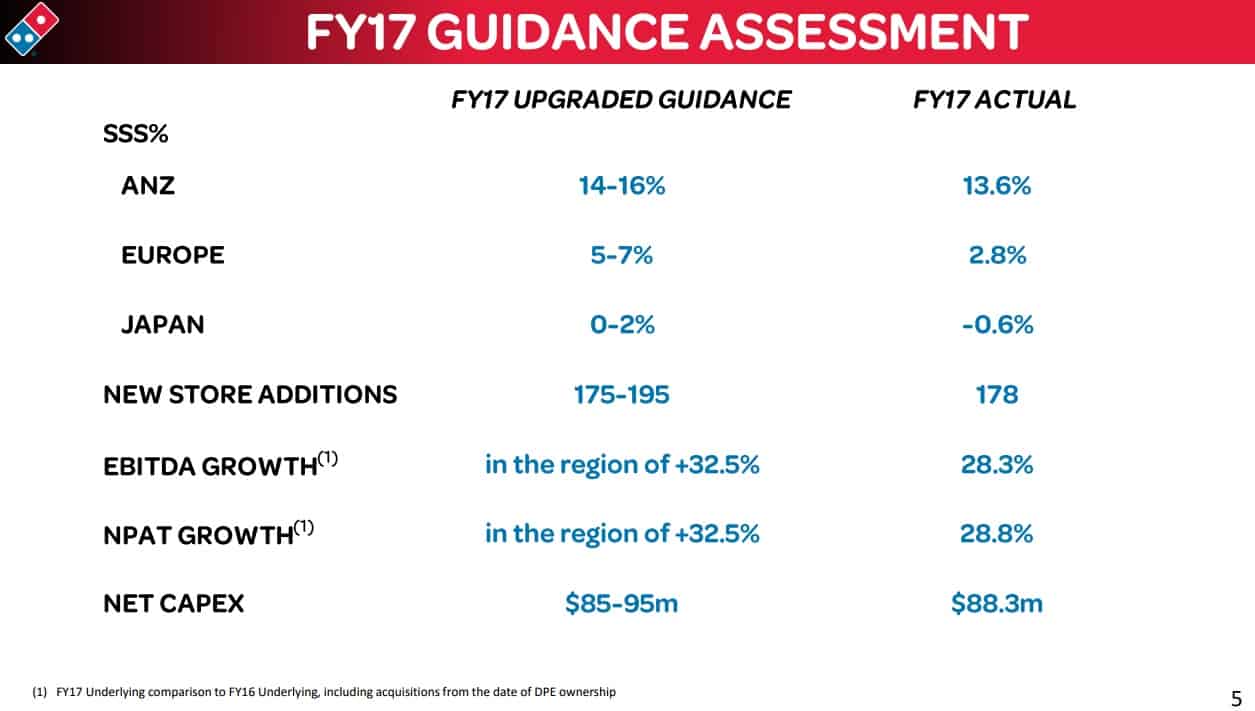 Domino's shares could have dived for a variety of reasons, but my guess is the primary reason was that the company failed to hit guidance given at the half year: