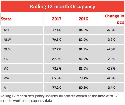 First half earnings grew at least in part because the company could save enough on wages and costs to offset increased rental expenses. Modest fee increases were unfortunately offset by weaker occupancy however, with 'like for like' (LFL) or 'same centre' occupancy falling 3.4% to 77.2%: