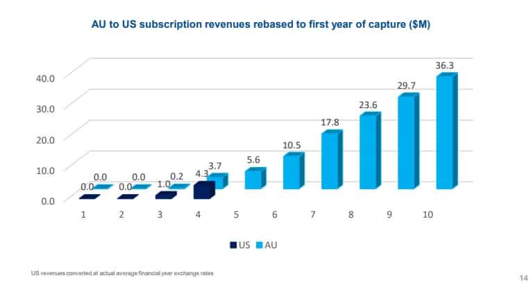 - Outlook for double digit growth in Australia, and ACV expected to double in USA