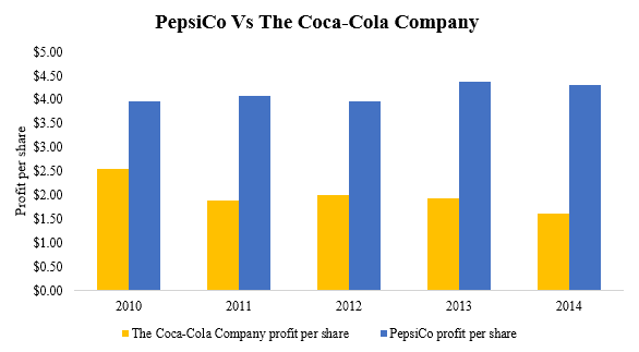 It shows Coca-Cola Company's profit per share falling over time, while PepsiCo appears to be gaining ground.