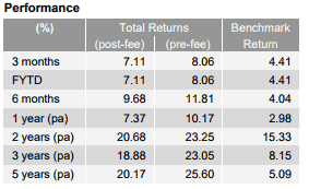 - Fund performance: The fund's performance is outlined below. The fund has outperformed its benchmark over the last 5 years with an annual gross return of 25.6% over the same period.