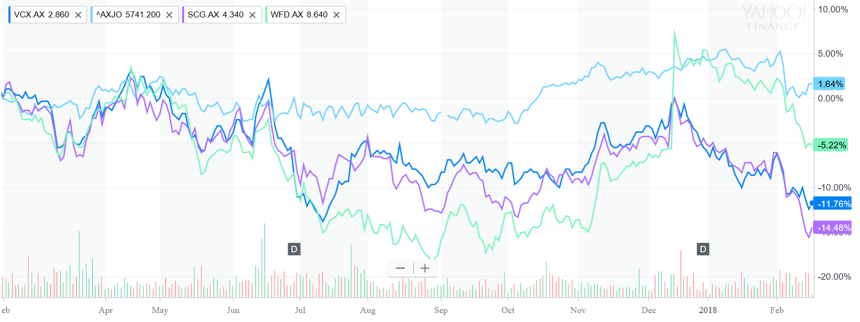 Vicinity Centres isn't the only one in the sin bin. Scentre Group (ASX: SCG) has shed nearly 15% of its value while Westfield Corp has lost more than 5% over the same period.