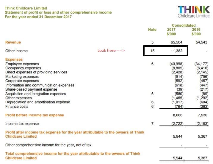 However, I was subsequently disappointed by the half-year results in August, and the guidance therein. Specifically, the positive impact on earnings of the "earn-out not paid", disclosed in the half year report, made the statutory results look better than the underlying results. As you can see below, the full year profit would have been lower if not for the $1.382 million in "other income". That "other income" is actually a result of an under-performing acquisition, so it's not a good thing!