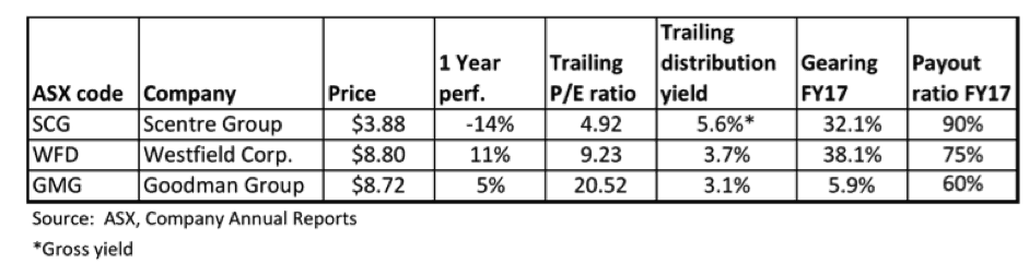 - Softening retail sector: Growing online purchases and dangerous levels of consumer debt seen as a negative for A-REITS heavily exposed to retail.
