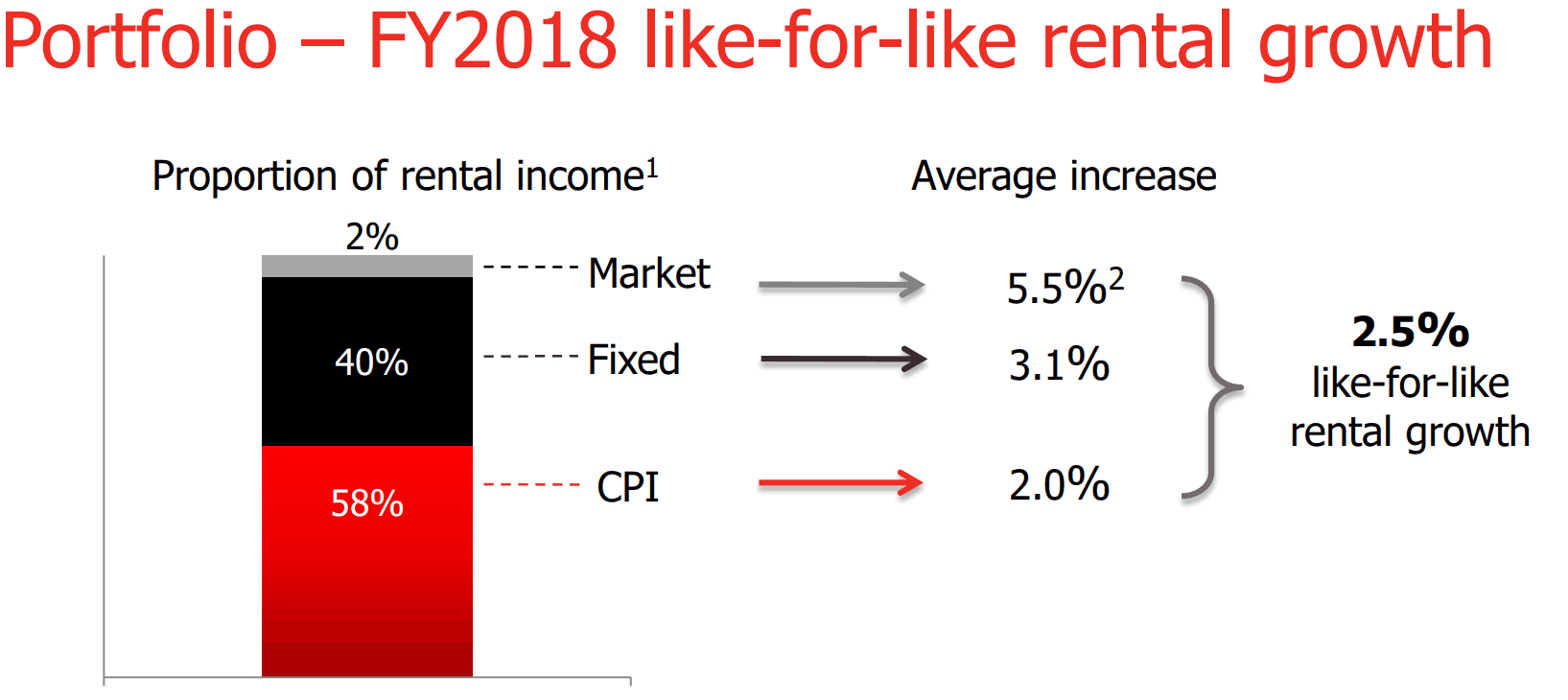 • The portfolio had a 2.5% like for like rental growth