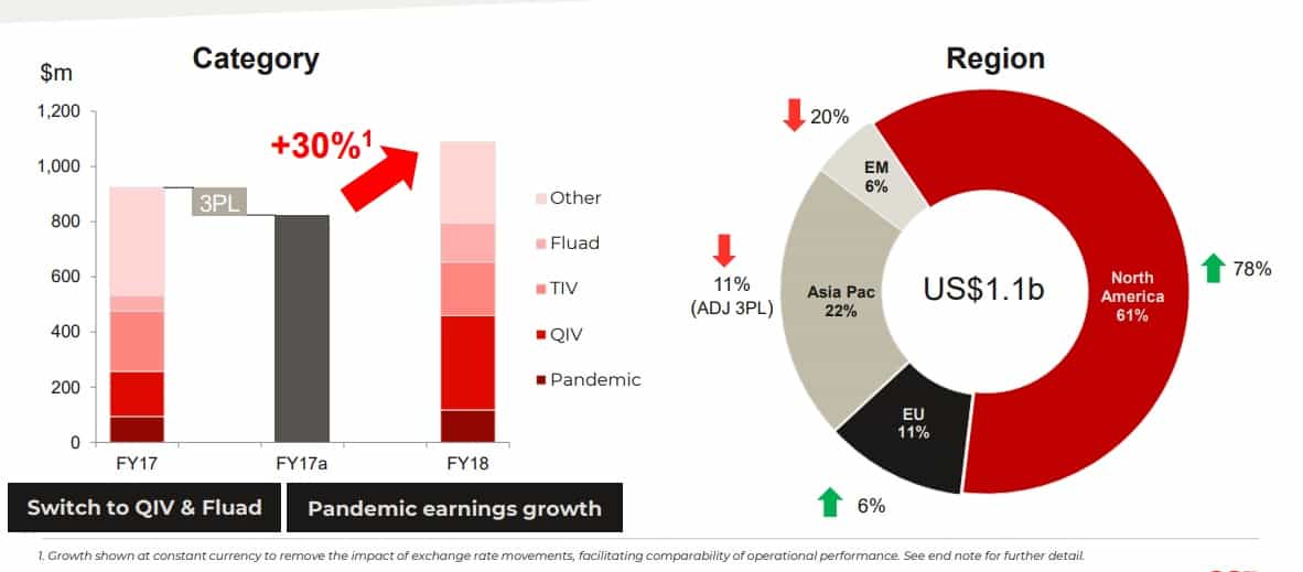 Recently acquired vaccine business Seqirus also delivered strong growth, growing its overall sales despite sharp falls in emerging markets and Asia Pacific: