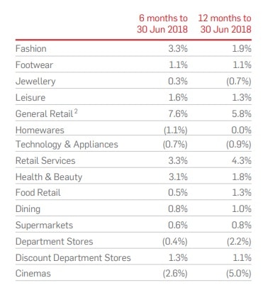 Sales performance at certain Scentre Group retailers was poor this half: