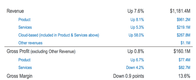 The solid revenue growth was driven by a positive performance from the company's core Product business and significant growth in Cloud-based revenues. This can be seen below.