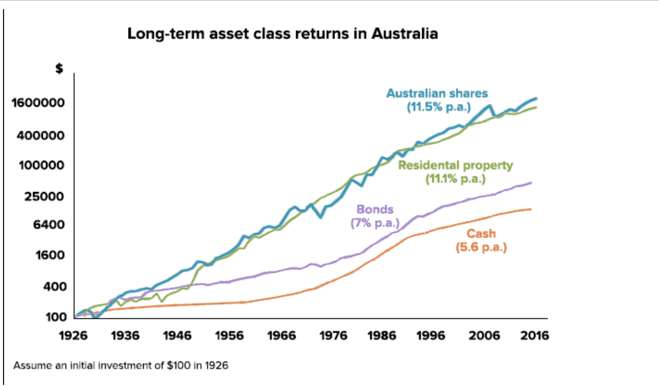 The same $100 investment over the same time period in either shares or real estate would have turned into $1.6 million. By taking the literal meaning of risk, clearly the choice to have your money sit in the bank, hoping you magically get rich is a hell of a lot more risky than investing in shares for the long-term.