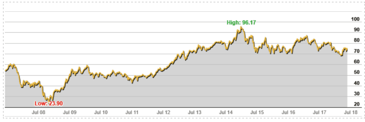 As you can see in the chart above, you could have bought shares in CBA for $23.90 in the depth of the GFC compared to $60 a year ago. Buying shares when they are undervalued can significantly increase your returns on top of the 11.5% p.a. long-term returns already available in the share market.