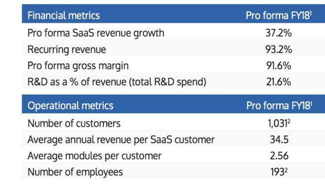 This revenue was driven by the almost doubling of its customer numbers from 524 to 1,045 and a 3.9% increase in average revenue per SaaS customer to $34.50. As you can see below, 93.2% of this revenue is classed as recurring, giving the company a strong foundation to build on in FY 2019.