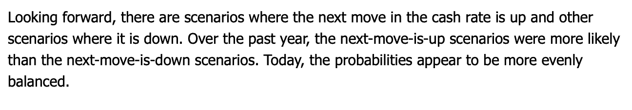 This afternoon the governor of the Reserve Bank of Australia, Philip Lowe, told Australians that the next move in benchmark interest rates is just as likely to be lower as it is higher.