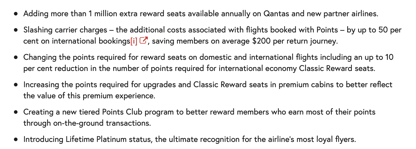 However, it did issue a media release this morning describing what it called the "biggest overhaul to its frequent flyer program in 32 years." Below is an excerpt of the media release detailing the key changes for frequent flyer members.