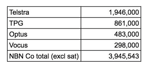 The chart above highlights Telstra's dominance of mobile phone ownership, and the chart below demonstrates its lion's share of new NBN connections.