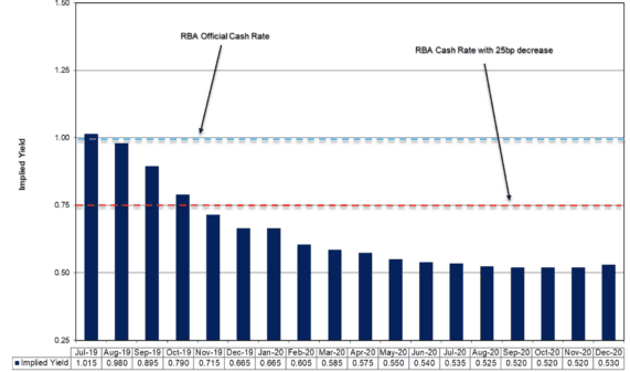 As you can see below, the market expects a rate cut to 0.75% in October or November and then a further rate cut to 0.5% around the middle of next year.