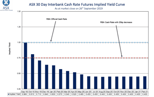 After which, by May of next year the market believes another cut will have taken place, bringing the cash rate down to just 0.5%. This can be seen on the graph below.