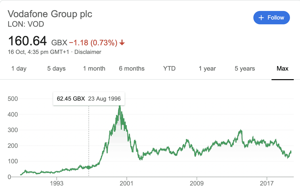 At the same time it has smashed the profits of large global telcos like Sprint or Vodafone. If you don't believe me take a look at their share price charts. They've both gone nowhere since 2000.